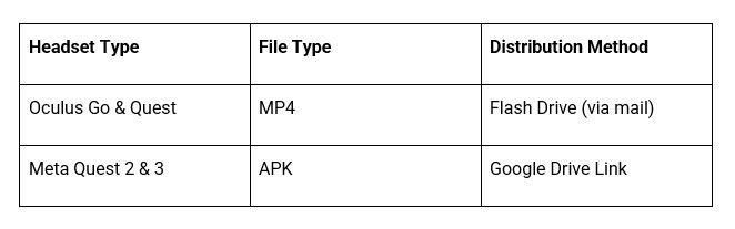 If you purchase the MP4 the file will be sent to you on a USB device. If you purchase the APK the file will be given access to the file through Google Drive. AFA will provide all users with an in-depth technical assistance orientation that includes training on how to upload the file onto the headset and other FAQ’s.