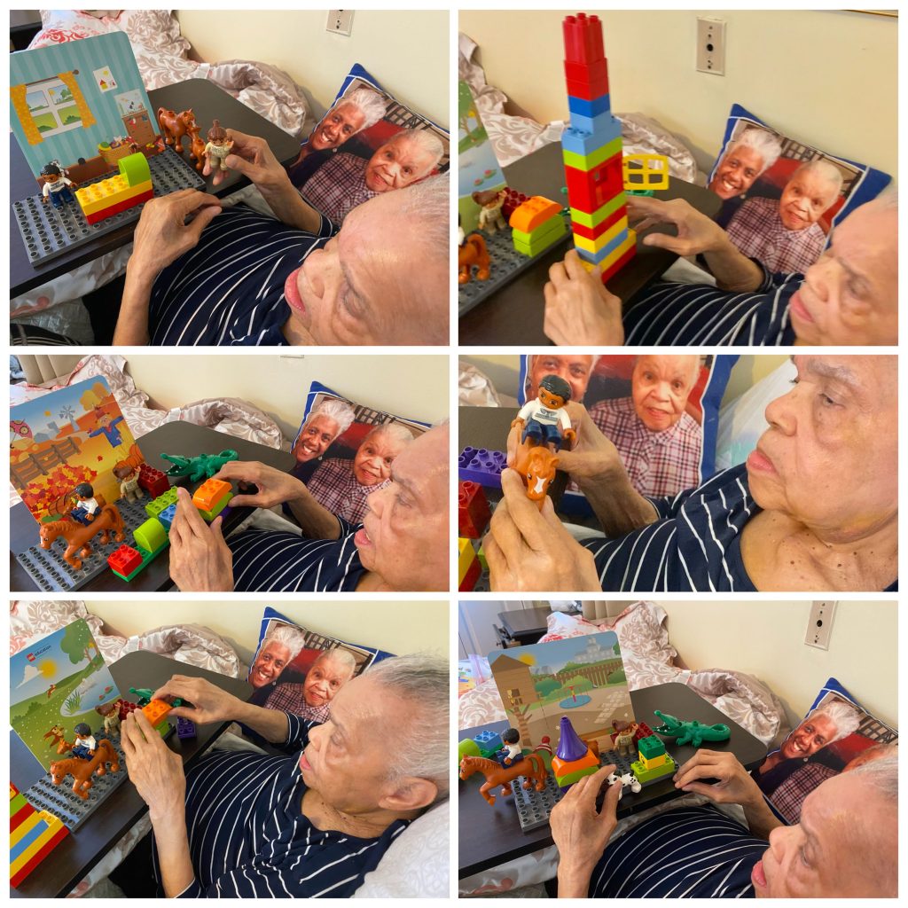 It was Legos that helped Woodward deal with the shock of her dementia diagnosis. “She was really shaken up and borderline in tears. I got out my Legos in the car and said, ‘Build how you feel.’” Veney kept Legos in the car because her mother was a nervous passenger and working with them distracted her. On that day her mother couldn’t concentrate on building. She reached for a Lego person, snapped off its head and told her daughter, “I feel like in a couple of years from now I’ll lose my head.”